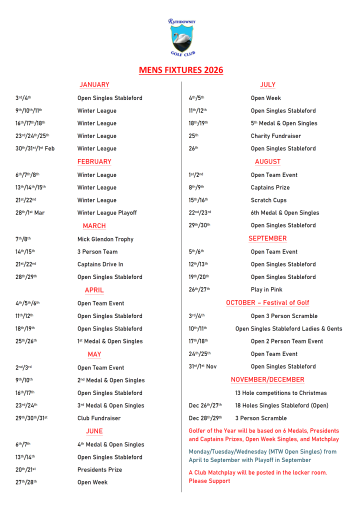 Men’s Fixtures 2026